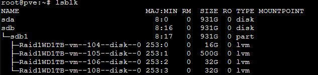 Im nächsten Schritt booten wir Proxmox und starten die Shell. Hier kontrollieren wir die vom RAID-Controller zum Betriebssystem hoch gereichten Festplatten mit dem Befehl